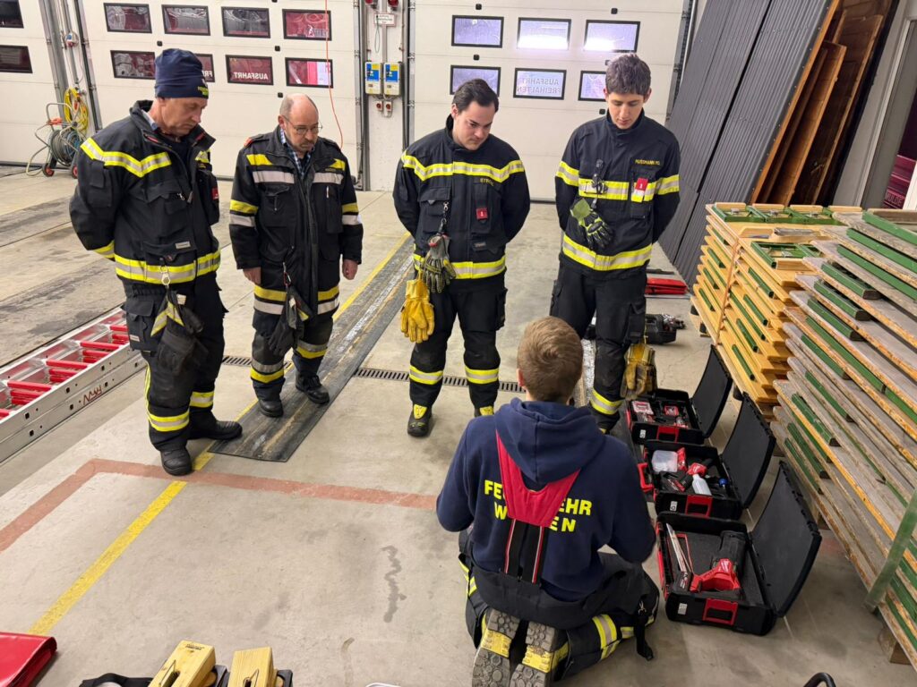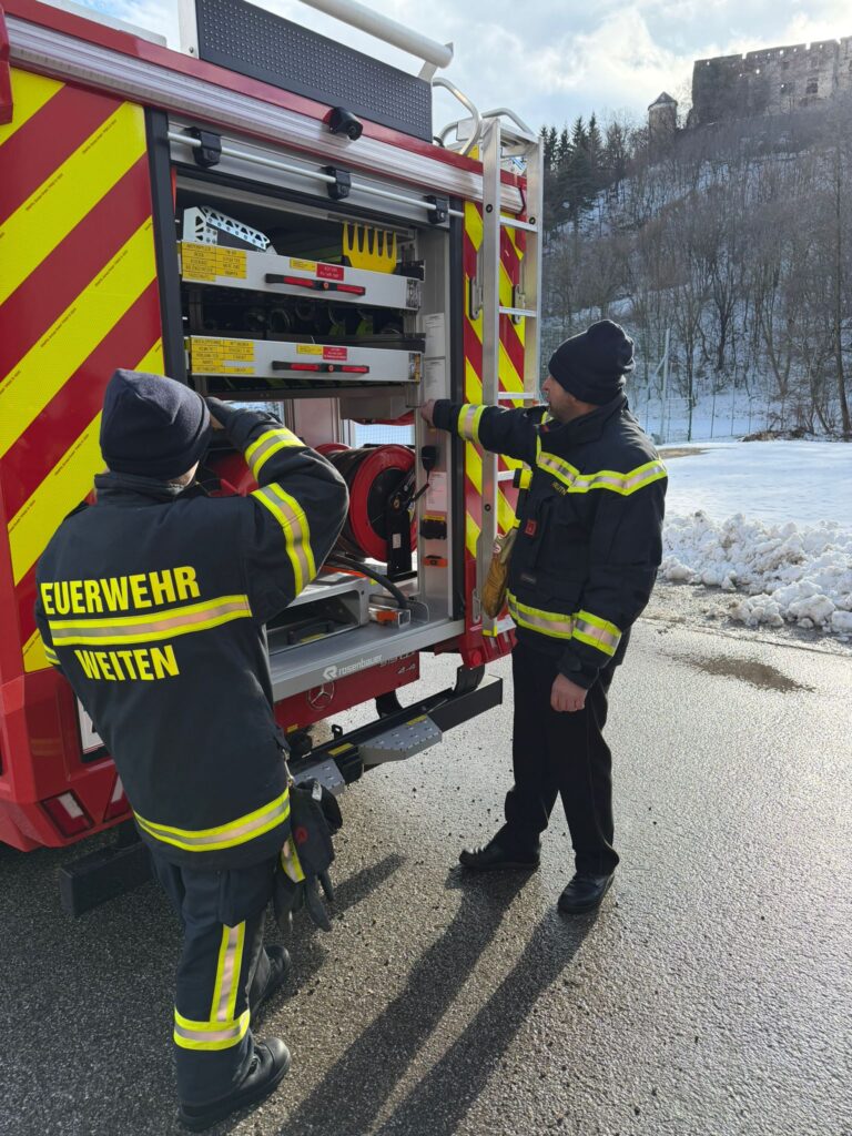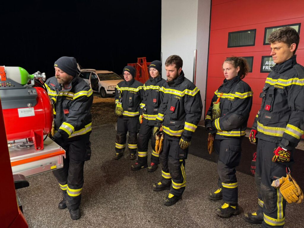 Ein wesentlicher Bestandteil der Ausbildung war die Fahrzeugkunde – also die genaue Einteilung und Position sämtlicher Geräte im Fahrzeug. Ebenso wurde die Bedienung und Anwendung der Polylöschanlage ausführlich geschult, um deren Möglichkeiten im Einsatz bestmöglich nutzen zu können.