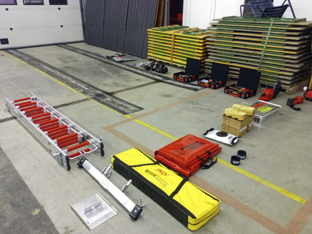 Natürlich befinden sich auch bewährte Geräte in unserem neuen Fahrzeug, darunter Spreizer, Schere und Stempel auf Akkubasis, das Halligantool, das Holmatro T1 sowie die Rettungsplattform, um nur einige Beispiele zu nennen.